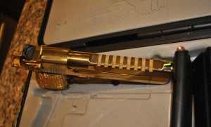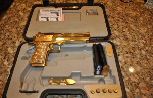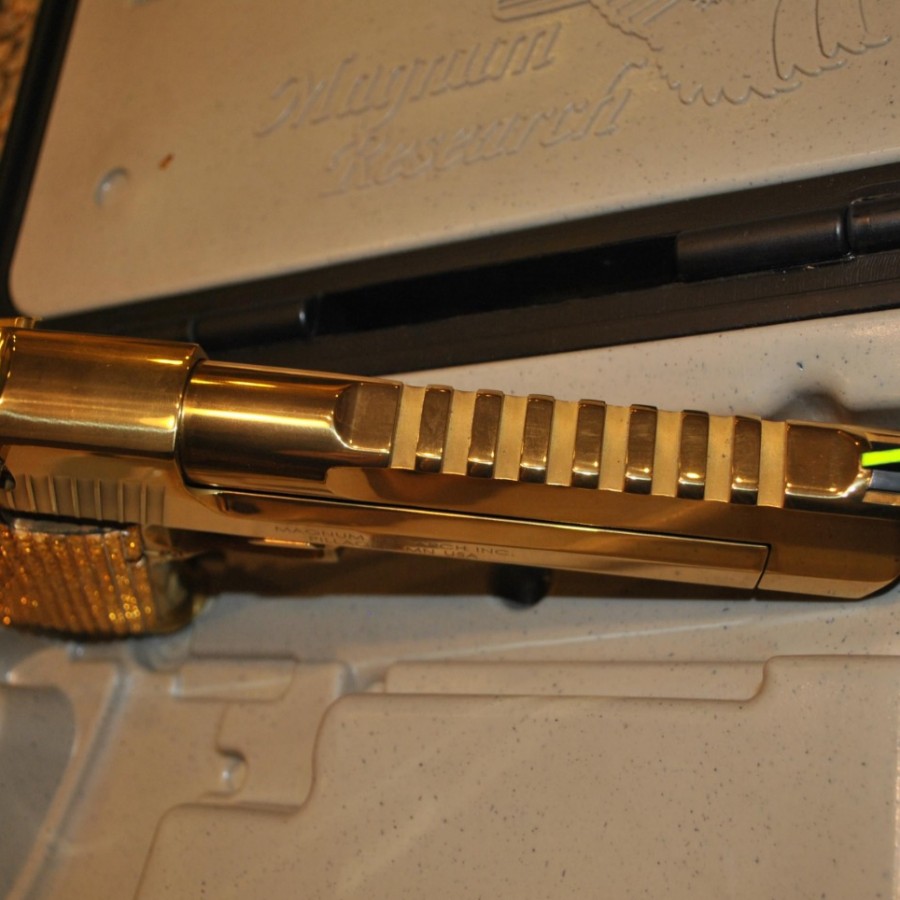 This Magnum Research Desert Eagle MK19 (DE50TG) is better than new! It is semi automatic and fires the .50 AE round. It features a titanium nitride gold finish with a 6″ barrel. It comes in a hard case and includes 2- 7 round magazines, manuals,& DVD manuals. To order now please visit my website premuimhandguns.com/